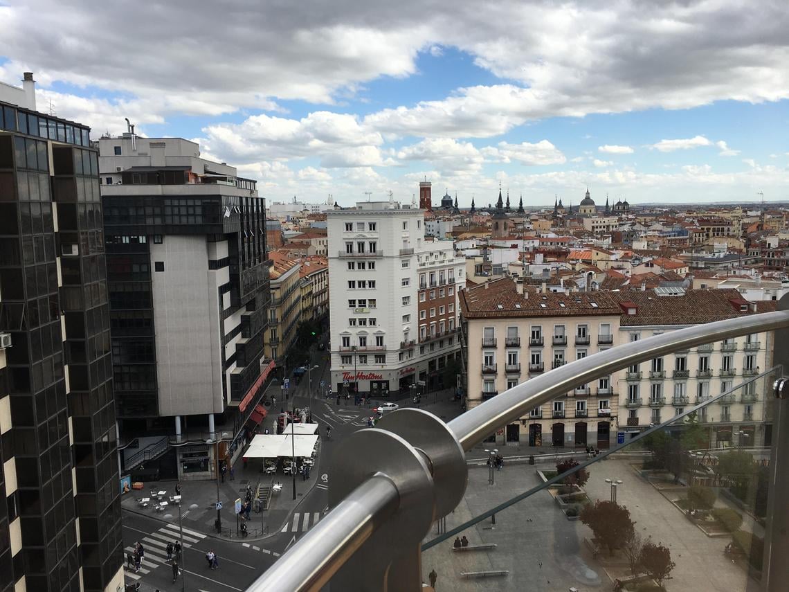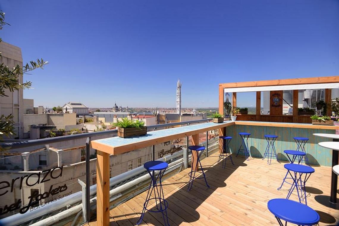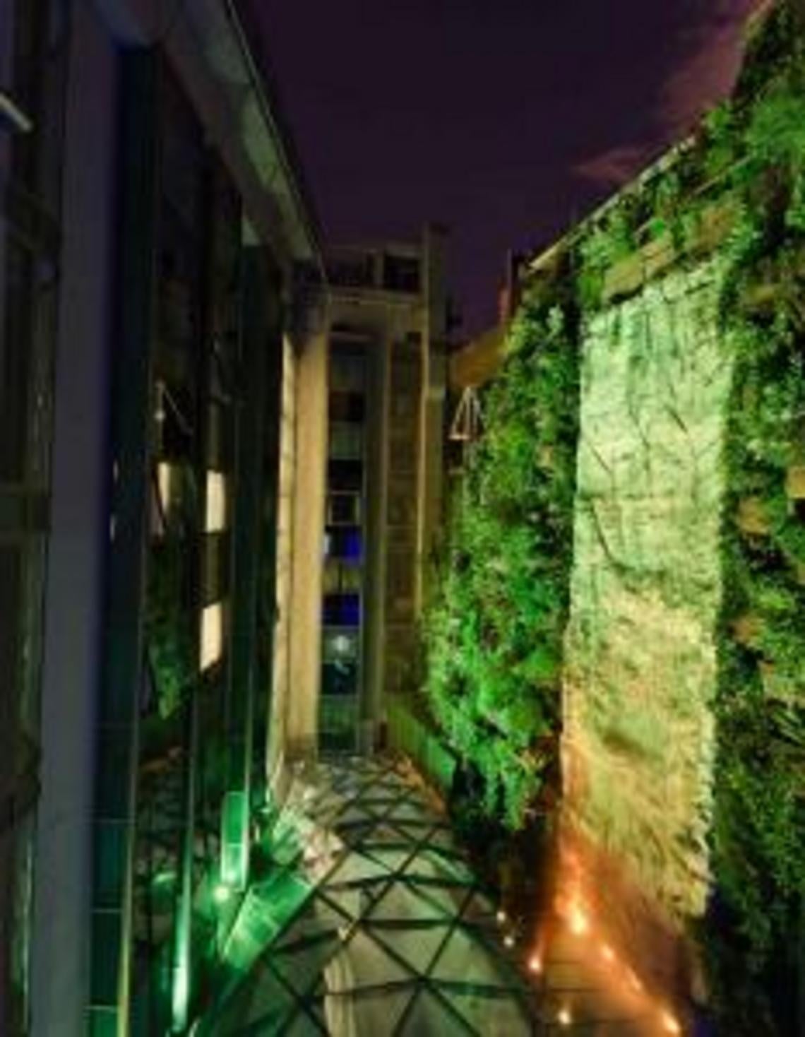 La terraza que se ubica en la séptima planta del Inhala Hotel Garden, ofrece unas magníficas vistas al Madrid de los Austrias, a las plazas de España y Santo Domingo, al Palacio Real y al jardín vertical que en el 2011 recibió el Record Guiness al jardín vertical más grande del mundo.